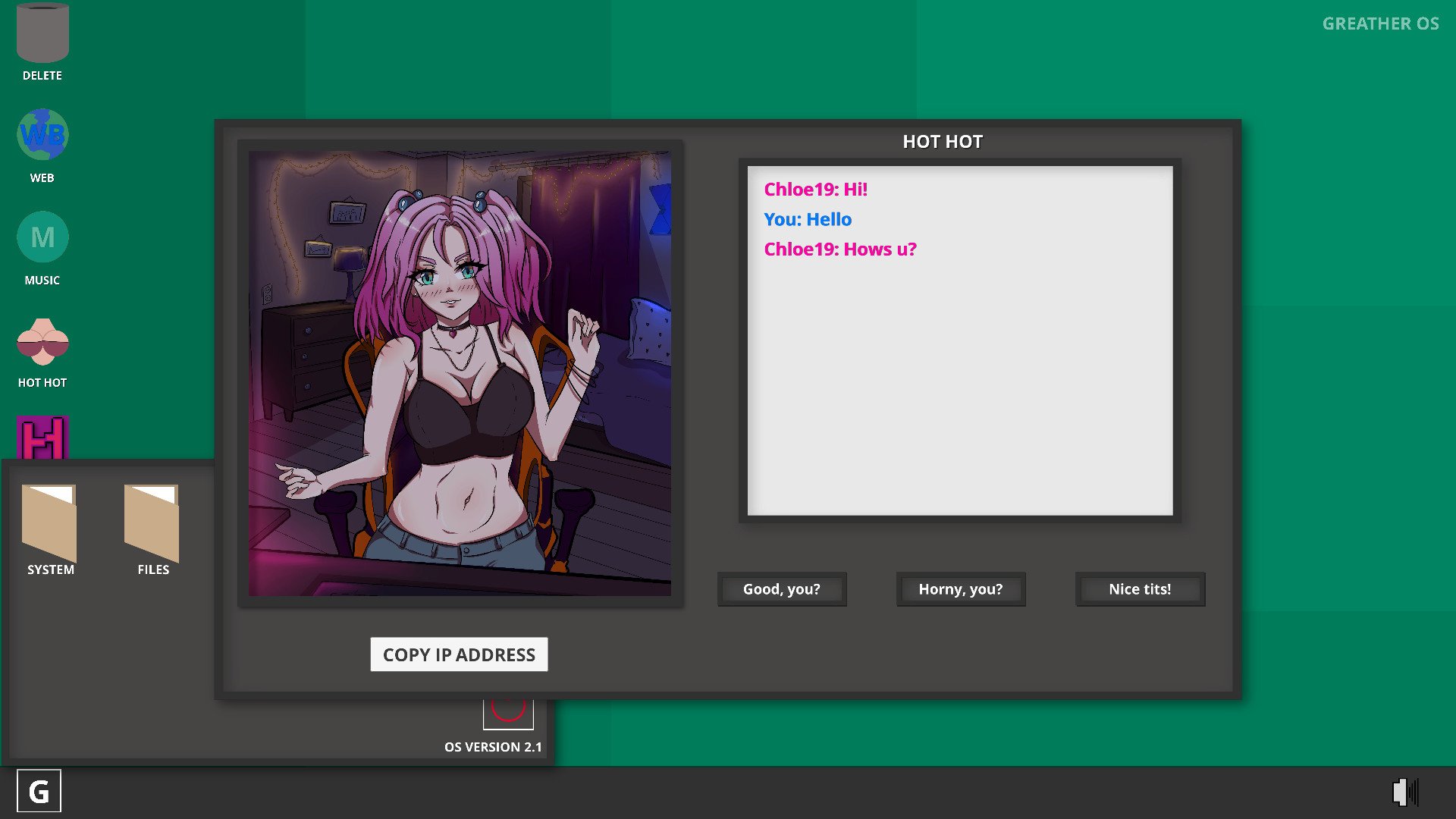Explore your new desktop, choose your wallpaper, listen to music, check out the web and even install applications such as Hack-Her, the 2D shooter hacking software. Destroy enemies to retrieve data while secretly spying on your target.