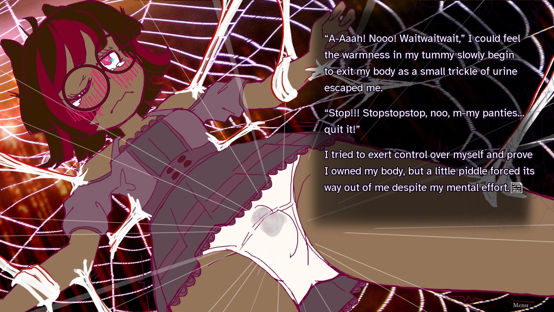 A yuri visual novel about two transgender spider girls, featuring spanking and wetting.