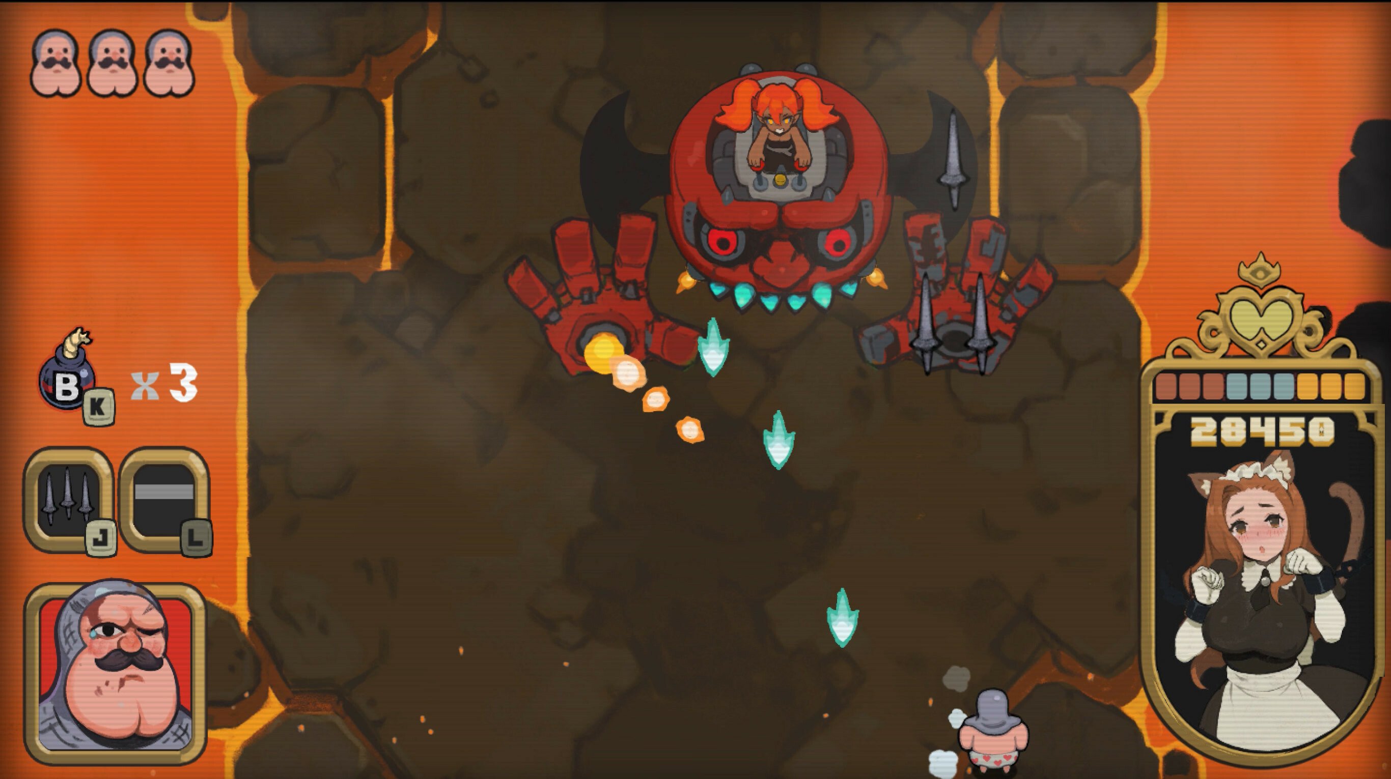 Use various weapons, items, and powerups to slay swarms of evil minions. Defeat bosses to free the kidnapped beauties from their greedy claws. Show those monsters what you're made of and return to the kingdom with maidens aplenty!