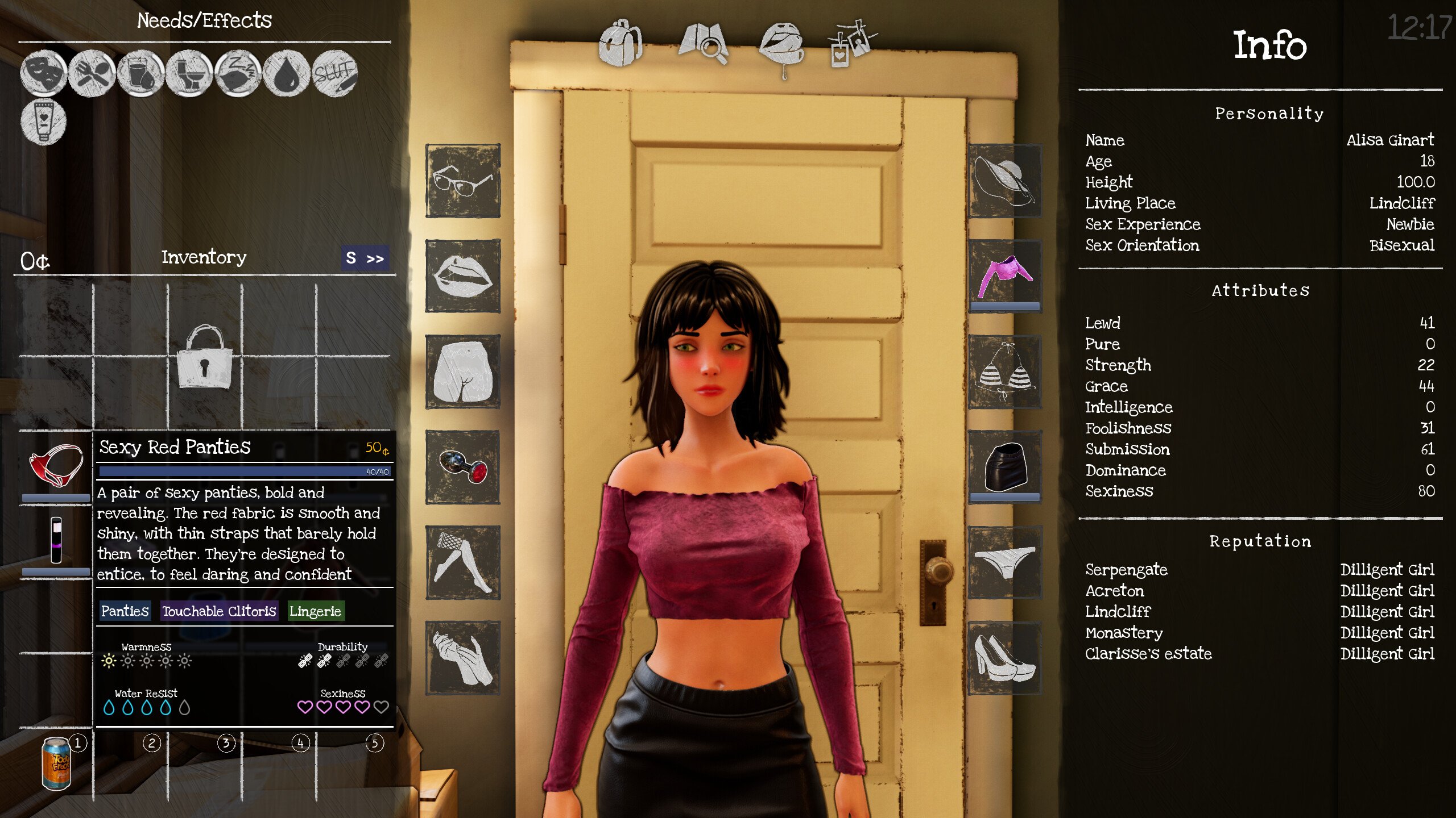 - Exhibitionism: Gradually unlock the ability to wear more revealing clothes... or no clothes at all!