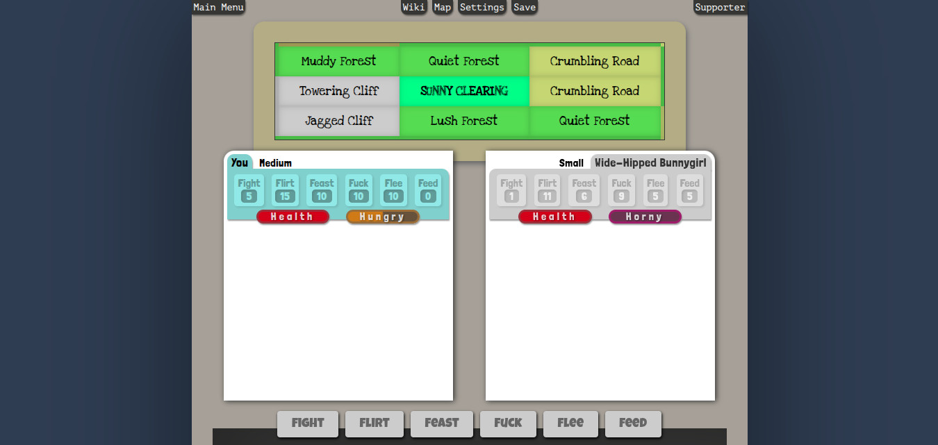 A pred-focused vore sandbox text adventure with jungles to explore and castles to conquer. The game is procedural generated, so each playthrough will be unique. Increase your stats by eating cute monstergirls, and gain allies by fuckin em.
